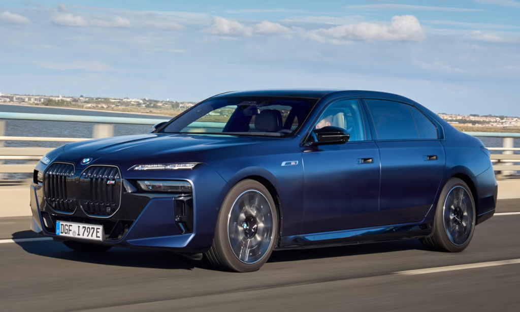 BMW i7 — це перший флагманський електричний седан від бренду. Автомобіль оснащений акумуляторною батареєю ємністю 101,7 кВт·год, що забезпечує запас ходу до 500 км.